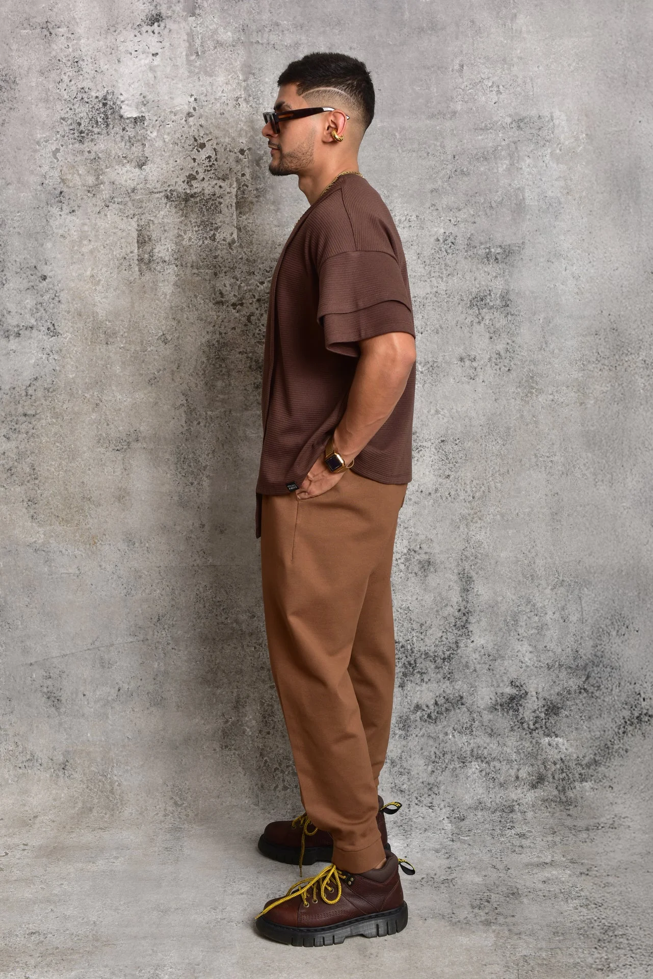 It’s not a basic tee. Its asymmetric design with a front layered panel and double sleeves creates volume and movement, transforming any look into a true style statement. The relaxed fit adds comfort and fluidity without losing presence.
