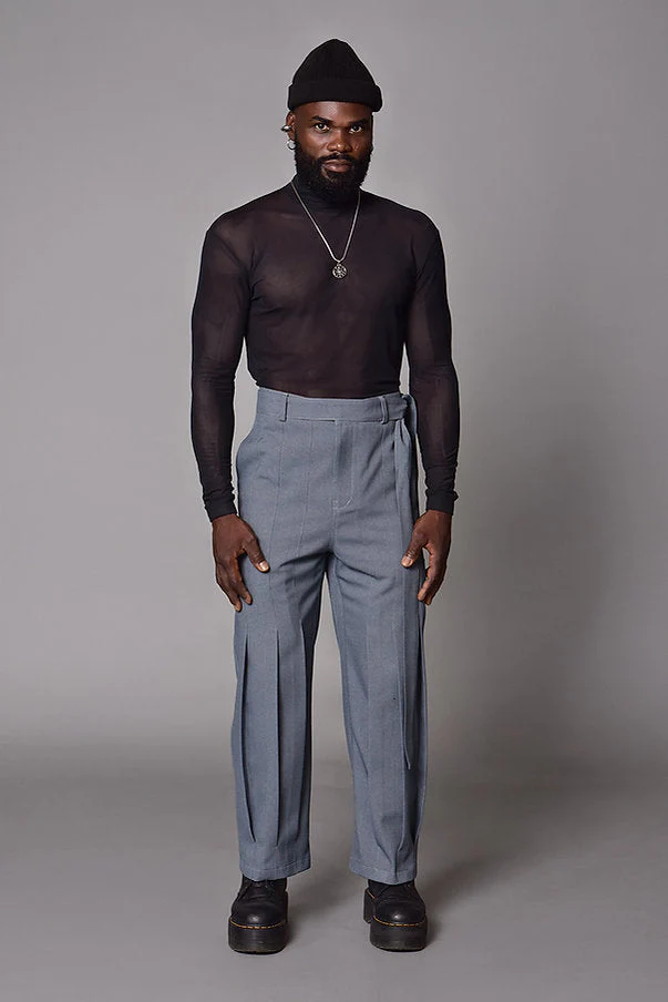 Featuring sharp front pleats and a relaxed fit, these pants blend comfort and elegance at their finest. They include functional pockets, a classic closure, and a two-meter belt that allows you to personalize the silhouette. A piece designed for those who seek balance between subtlety and boldness.